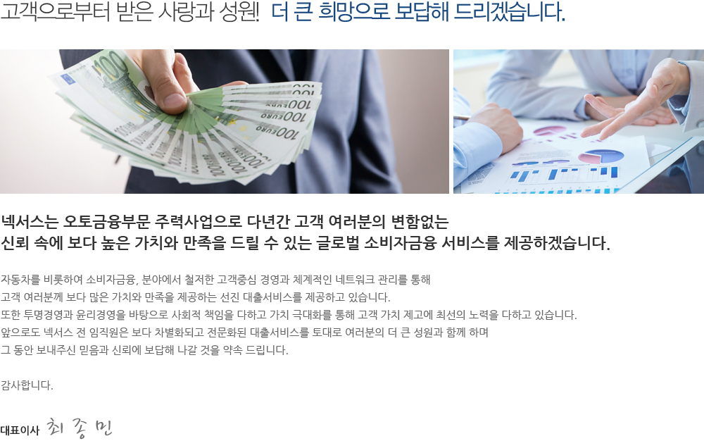 앞서가는 글로벌 소비자금융으로 고객에게 감동과 행복을!
